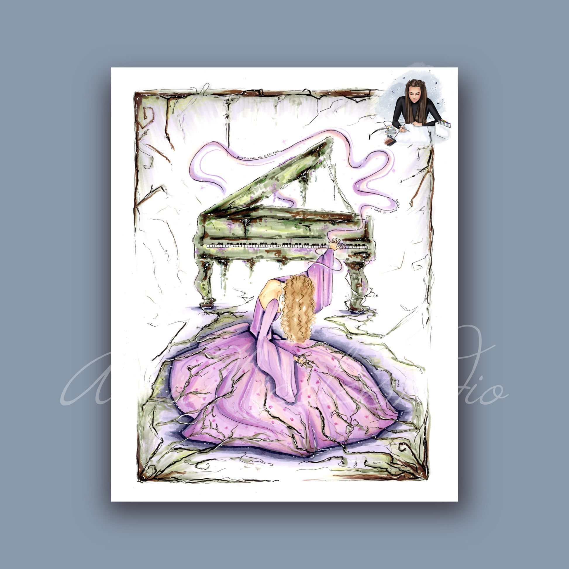 This print is a story of two songs intertwined, an original illustration by AliciaNicoleStudio.